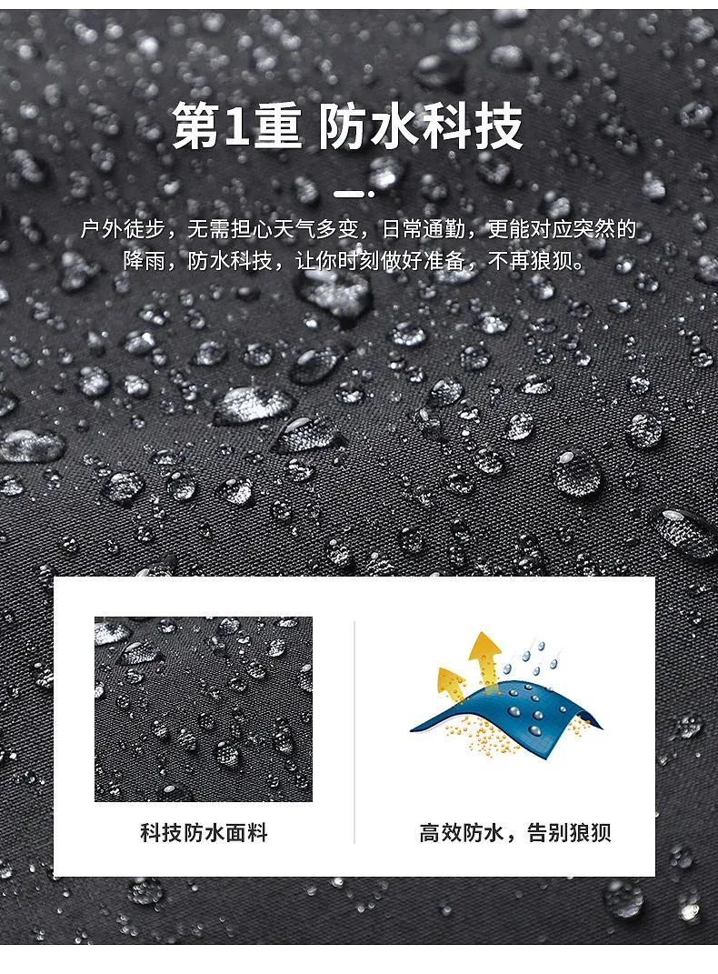 打破了传统面料的局限性,采用市面领先的防水黑科技——仿荷叶拒水拒污科技,使衣服表面能拥有像荷叶一样滴水不沾的性能。