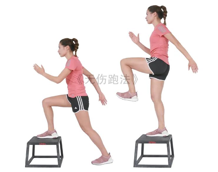 对于初级跑者而言,下蹲练习可以提高力量,而对于资深跑者或有一定跑步基础的跑者而言,下蹲练习对于提高跑步能力的作用就日渐递减或者几乎没啥作用了。跑步时的基本动作是一条腿蹬地发力,而另一条腿向前跨出,因此,两条腿做的是不同的动作。而做下蹲动作时,虽然也是蹬地发力,但两条腿做的却是一模一样的动作,所以下蹲不符合跑步下肢发力特点。下蹲做得再好,也无法应用在跑步中。另外,下蹲时是伸髋伸膝的动作,而跑步着地发力时,后腿伸膝幅度并不大,更多是伸髋紧接屈膝(大腿后摆,小腿折叠)的动作,前腿则是屈髋屈膝(抬腿)的动作,所以下蹲和跑步动作结构完全不同。下蹲时主要锻炼臀部肌肉和大腿前侧的股四头肌,这两组肌肉在蹬地过程中发挥重要作用。这两块肌肉的力量固然重要,但跑步时还需要另外两组肌肉同步参与,特别是屈髋肌肉(髂腰肌)和大腿后群肌肉(腘绳肌)。这两组肌肉对于小腿折叠和抬腿发挥重要作用。因此,下蹲动作实际上只锻炼了跑步所需要的一部分肌肉的力量,下蹲无法锻炼到跑步所需要的后腿蹬地紧接折叠小腿和前腿摆腿的力量。只有更强有力的小腿折叠和抬腿,才能在不影响步频的情况下,增大步幅并且更加省力。高水平跑者抬腿能力和小腿折叠能力很强就说明了这一点。下蹲只是增强腿部力量的一般锻炼方法,通过下蹲增强的腿部力量难以真正应用在跑步上。而且,下蹲做得不标准,还会对身体构成较大伤害。最常见的错误动作包括膝盖过度弯曲超过脚尖、膝盖内扣、弯腰驼背和上半身过度前倾等。这些错误动作不仅无法帮助提高力量,反而会导致膝盖、腰背部压力增加,越练越痛。因此,下蹲可以增强基础力量,适合普通人和初级跑者;有一定基础的跑者或资深跑者,想要提高下肢专项力量,下蹲就显得远远不够。接下来,本文从基础力量、准专项力量、专项力量三方面进行讲解如何去增强下肢力量。下蹲可以有效提高下肢力量,对于普通人和初级跑者仍然是非常有用的训练方法。蹲至大小腿约呈120 度角,挺胸收腹,感觉腿部和臀部用力。蹲至大小腿约呈90度角,注意膝盖不要过度弯曲超过脚尖,挺胸收腹,感觉腿部和臀部用力。相比半蹲,难度加大,蹲至大腿与地面平行,要求与半蹲基本相同。双脚距离较大,脚尖朝外,该动作可刺激到股内侧肌,起到平衡股外侧肌的作用,对于纠正髌骨运动轨迹异常,减少膝痛有一定帮助。对于有一定基础的中级跑者,可以从基础力量训练进阶为准专项力量训练,即动作模式已经接近跑步,同时难度中等,比较专门化的力量训练。它们可以帮助中级跑者提高下肢专项力量,比下蹲更接近跑步动作。左右腿交替向前迈出,除了锻炼下肢力量,同时对于平衡稳定也有一定要求,相比原地弓箭步难度增加,也更加接近跑步。将一条腿放在训练凳上,另一条腿做下蹲,对于稳定、力量均有一定要求。相比基础力量训练中的仰卧挺髋,单腿增加了难度,强化了核心控制,同时也符合跑步单腿蹬伸的技术特点。对于资深跑者,或者有较高要求的跑者,则需要高度结合跑步动作的专项力量训练,才能使其跨越瓶颈期,实现力量与速度的同步提高。同样需要一侧腿用力蹬伸上训练凳,另一侧腿积极上摆,与跑步动作高度一致。该动作在侧桥位摆臂摆腿,动作模仿跑步,同时要求骨盆控制良好。这是一项看似简单,实则较难控制的全身性训练动作。相比单腿硬拉,加上提膝动作就更加符合跑步技术特点。总体来说,对于跑者而言,下肢力量训练的重要性无论如何强调都不为过。对于初级跑者,建议从基础力量开始训练,对于中高级跑者,专项力量训练显得更为重要,也更有用。只有结合跑步动作的力量训练才能帮助他们真正改善跑姿,提高配速。