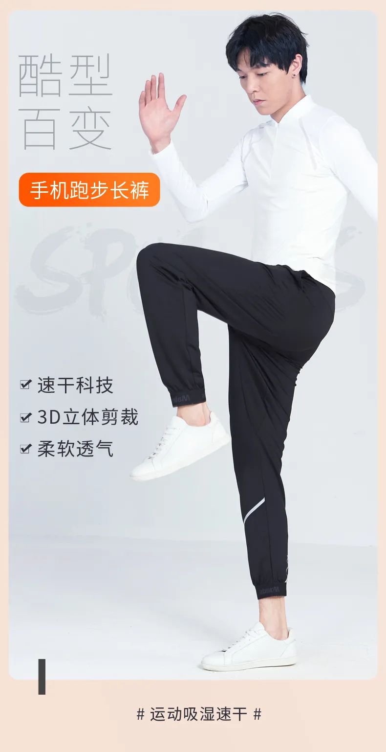 这款运动长裤,后腰贴心设计防汗运动拉链口袋