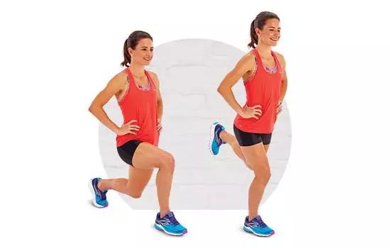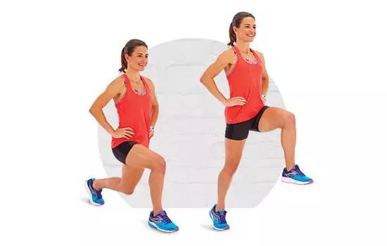 右腿向后撤步,同时向体侧抬高,仿佛你刚越过一个栏架或障碍。(模仿跨栏动作。)用左腿重复。连续交换腿做。