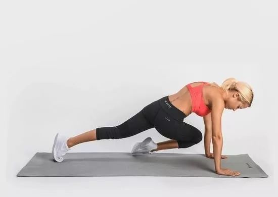 然后核心部位发力,将左膝弯曲向右手肘方向移动。恢复原始姿势后,再用右腿做同样的动作。两腿之间的转换速度尽可能的快。