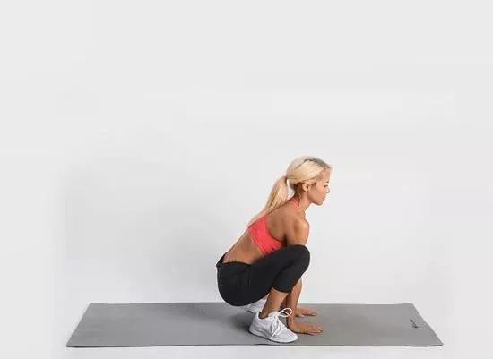 臀部向后方移动,身体尽可能的降低做深蹲动作,双手接触到地面。然后将双腿向后方伸直,双手支撑着身体呈现平板撑的姿势。