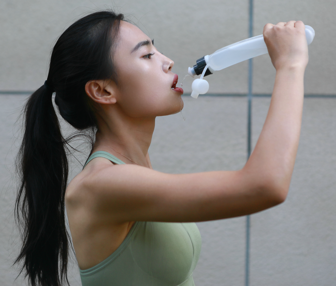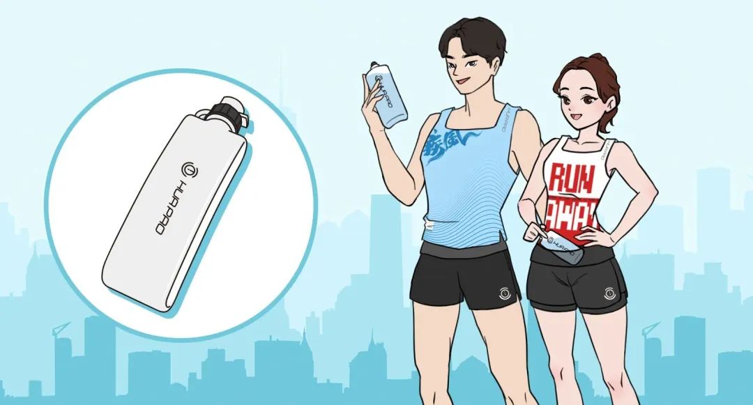 携带画跑运动贴身水壶,一键补水