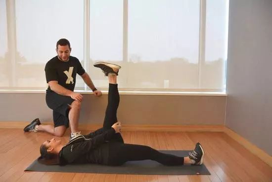 跑者平躺在地面,双腿伸展开。然后抬起左腿,将双手扣在左腿的膝盖后方,用力将左腿将头部方向移动,必须保持左腿伸直。重复做5次后换右腿做同样的动作。