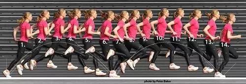 其实,不仅仅是核心部位,脚部同样是“滚动式”向前发力,跑步的着力点在前脚掌或全脚掌,跑步的发力点在前脚掌或脚尖,从着力到发力瞬间很短,触地时间越短越好。落地时要让脚后跟先着地然后迅速过渡到前脚掌,就像轮子一样,让整个脚掌在地上滚一下,由脚跟滚到前脚掌,到达前脚掌后迅速发力蹬地,形成向前的动力。