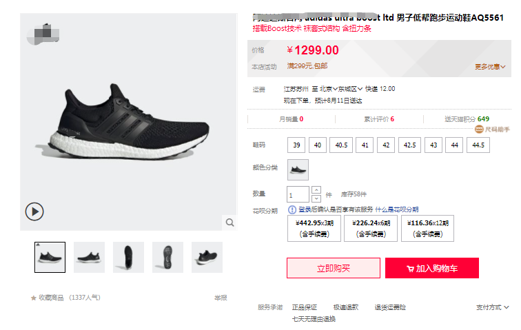 跑鞋秒杀89元,断码捡漏 ,39-44码进!