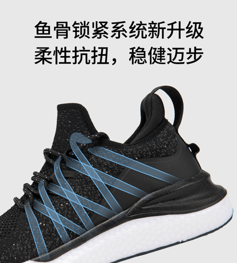 更为关键的是,鱼骨锁紧系统提高了跑鞋的包裹感和稳定性,从一定程度上降低了受伤的可能性。