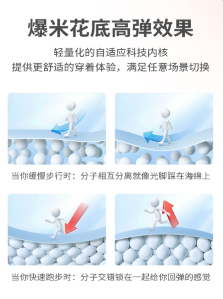 使用了「爆米花」新技术的马拉松专业跑鞋,具备了「软弹」、「超轻」、「舒适」的三大优势。