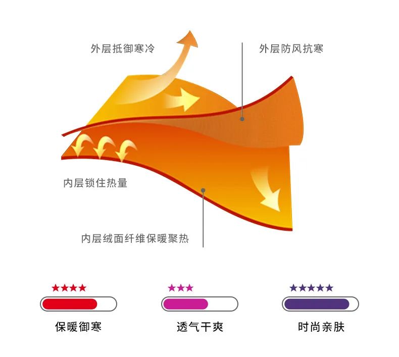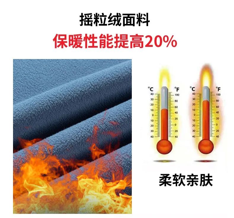 摇粒绒自带恒温系统可以持久锁温,外层防风抵御寒冷,内层绒面羊羔绒锁温聚热保暖。