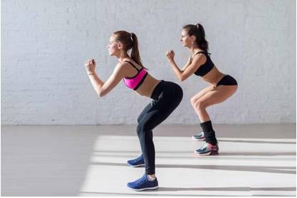 靠墙深蹲:找到一面墙,保持深蹲姿势不动、并使大腿和地面平行,背部直立贴于墙上,维持这个姿势至少30s。这种深蹲方式相对比较省力,且对膝关节损伤较小,适合康复或恢复期的跑友。负重深蹲:两手持哑铃,垂直于身体两侧,按照常规方式完成深蹲动作。此方法将加大跑者深蹲时的负重,增强整肌效果,但因身体负荷较大容易造成组织损伤,因此应注意控制强度与量。水平深蹲:双脚站距加宽、约为2倍肩宽,脚掌朝外缓慢下蹲。这种深蹲有利于大腿内侧肌肉的强度训练,但对身体柔韧性及平衡度要求较高,掌握不当容易造成拉伤。想要通过深蹲训练提速的跑友,除了要掌握正确的姿势之外,还应正确地选择深蹲训练方式。一般而言,常规的深蹲包括全蹲、半蹲、1/4蹲等几种。全蹲:大腿受力范围约120°~45°,完成下蹲时大小腿夹角≈60°;