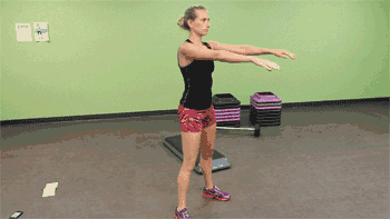 ②双手交叉放颈后、肘关节打开、肩胛骨向后收紧,或保持前伸、抬平胳膊;
