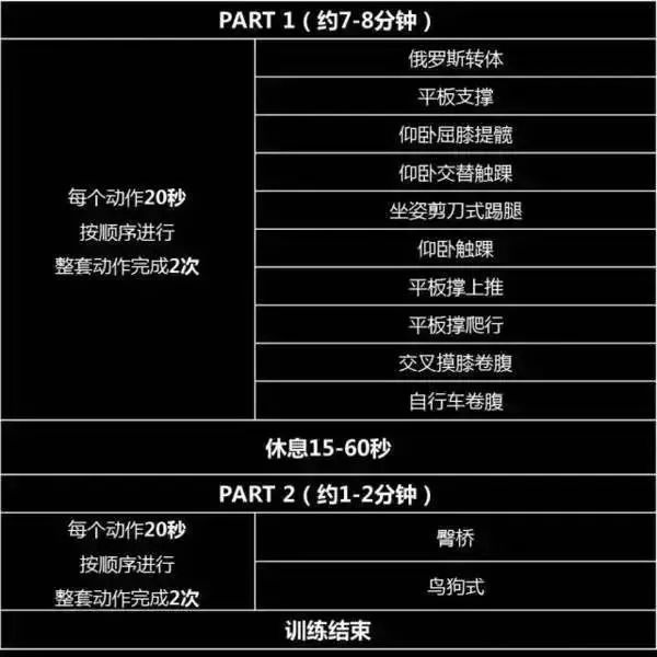 这套训练总共由12个动作组成,