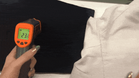 我们对穿着前后的热成像图进行对比 很明显穿上这款T后 直接给身体降温约3~5度!