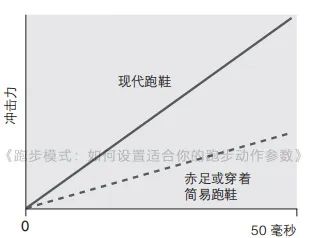 相较于赤足跑步或穿着简易跑鞋跑步,厚跟现代跑鞋会将“冲击流”(在足部触地后的支撑阶段,最初50毫秒中作用于腿部的瞬间冲击力)最大化。穿着厚跟现代跑鞋时的冲击流是赤足跑步时的3倍之高。换言之,本该保护跑者在跑步中免受冲击力的跑鞋,其实增大了冲击力。