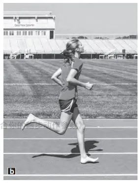 相比之下,赤足或穿着简易平跟跑鞋的跑者及进行正确的跑步模式练习的跑者们,在中长跑和长跑中触地时的膝关节角度为148~158度,短跑中触地膝关节角度为158~166度。
