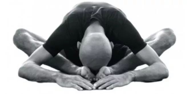 步骤2:双手抓住双脚,背部前延伸,尽量碰到脚趾。