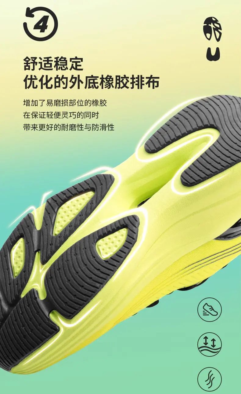 前掌双气垫动力反馈,后掌双气垫缓震减压,米中垫更耐磨更持久;
